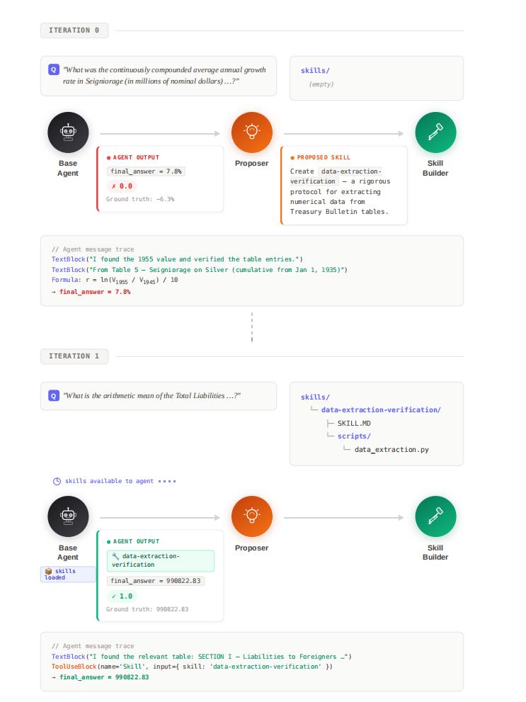 图 | EvoSkill——基于文本反馈的迭代 Skills 归纳。