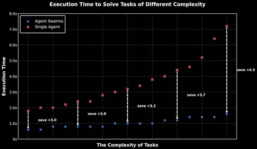 演讲最后一部分,杨植麟把重点落在智能体集群(Agent Swarms)上。