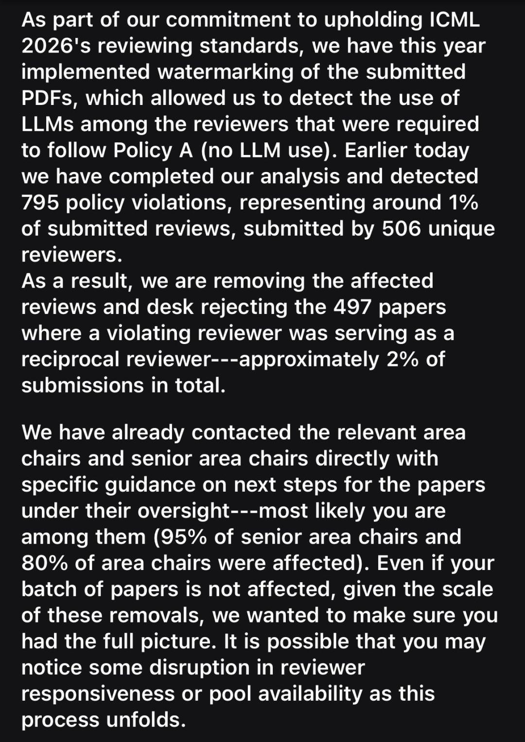 【导读】学术圈大地震!ICML 2026最新邮件爆出,497篇论文全部「桌拒」,竟因审稿人动用AI未标注,占总投稿量2%。一大批研究员在线叫惨,具体细节ICML官方明日公布。