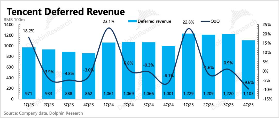 从递延收入看,Q4增值服务流水环比下降10%,下降幅度要比往年更大一些。这里除了有音乐付费降速、视频付费直接拖累等影响外,游戏自身流水应该是正常表现。