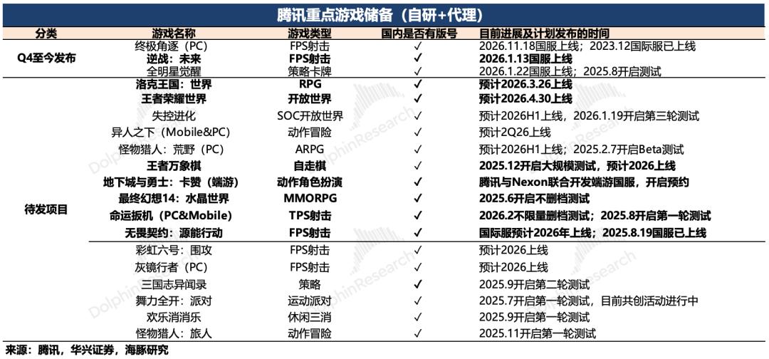 不过海豚君认为一如腾讯这样的头部游戏公司,新游储备已经不能完全代表游戏创收的未来波动,老游戏靠运营手段和版本内容的更新所带来的增量贡献,不亚于一个中型新游。