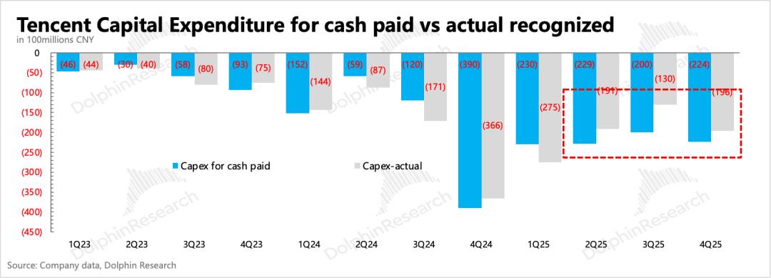 本季度资本开支196亿,环比有所增加。但实际现金流出224亿,同样存在预付的问题。不过就算是看现金流出规模,2025全年Capex也不足900亿,反过来看今年预算增长就会比较明显了。