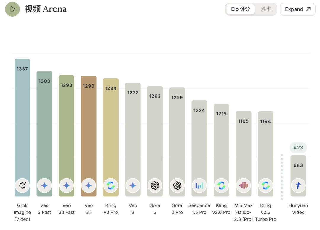 视频生成竞技场:Elo分数1337,甩开第二名33分。简单说,它能从文字描述直接生成视频,比如你输入「一只猫在月球上跳舞」,它就吐出流畅的短片,还带音效。