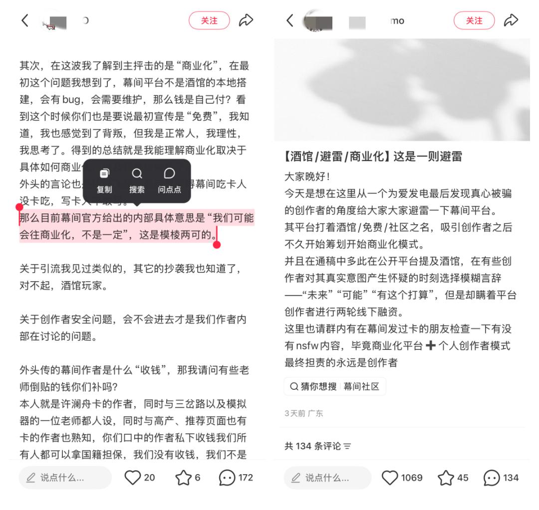 他们质疑「幕间」抄袭、白嫖创作者,以及平台存在安全风险等问题,巨大的舆论风暴之下,大量玩家和创作者开跟风撤离。