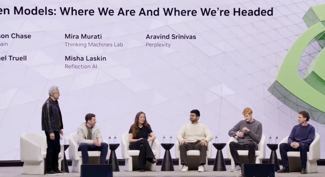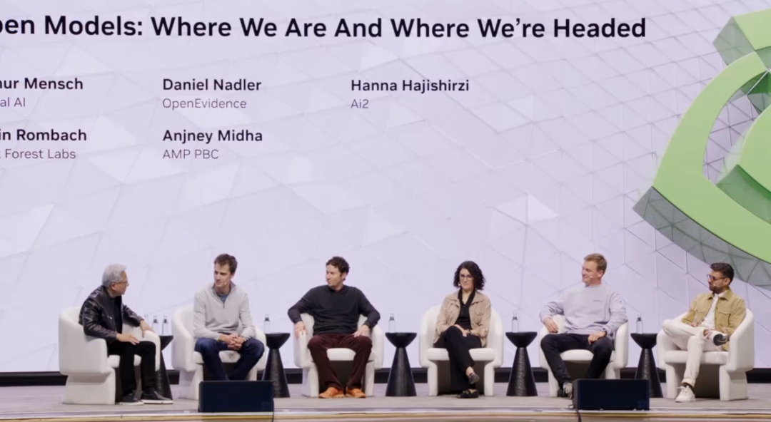 在 GTC 2026 上,黄仁勋请来了一组很少会同时出现在一张桌子上的嘉宾:LangChain 的 Harrison Chase、Cursor 的 Michael Truell、Reflection AI 的 Misha Laskin、Perplexity 的 Aravind Srinivas、Thinking Machines Lab 的 Mira Murati,以及 Mistral 的 Arthur Mensch、OpenEvidence 的 Daniel Nadler、AI2 的 Hanna Hajishirzi、Black Forest Labs 的 Robin Rombach、AMP 的 Anjney Midha。
