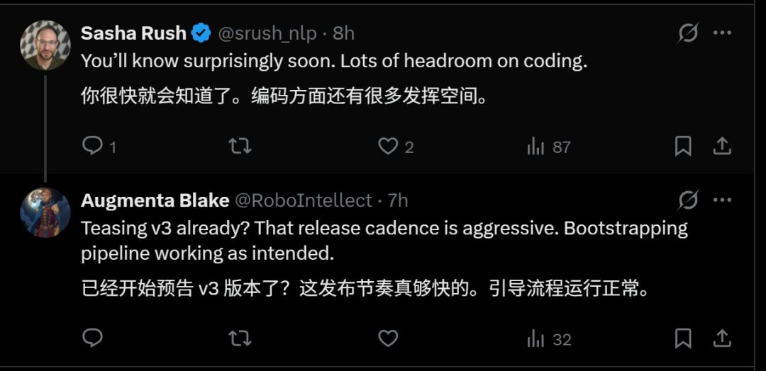而且前面不是说了Cursor节奏很快,这不,Cursor研究员也已经开始放出Composer 3的消息了。