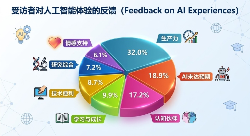 ● 安全与伦理:13%的受访者忧虑错误信息泛滥、隐私监控以及技术被恶意使用。
