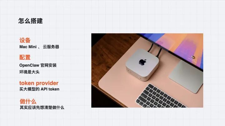 放龙虾的地方通常不是主力机。它能完全控制电脑,有隐私问题和冲突问题,装到工作机上很危险。所以大家都选了 Mac mini——没有显示器和电池,不用付额外成本,低功耗,直接连线就行。当然也可以在云服务器上搭 Ubuntu 系统。