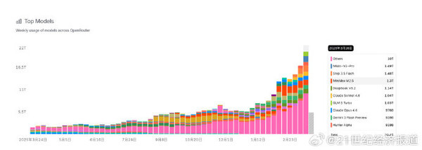【CNMO科技消息】3月23日,根据全球大模型聚合路由平台OpenRouter发布的数据,上周(3月16日至3月22日),国产大模型总调用量连续第三周超过美国模型,且领先优势进一步扩大。