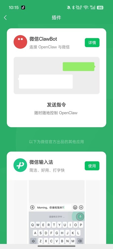 这是微信历史上罕见的“破例”时刻。十五年来,微信以“克制”著称,插件功能页长期仅有一款微信输入法,张小龙“好的产品是用完即走的”理念深入人心。但这一次,微信主动将聊天窗口向外部Agent敞开了怀抱。
