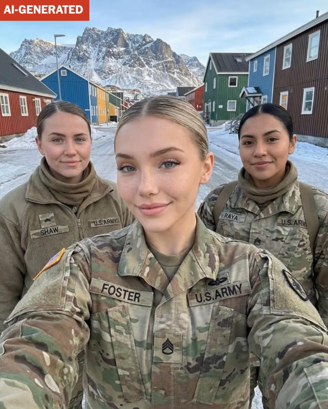 五十多张照片和视频,构建了一个完整的、令人信服的「军旅人生」:她与F-22猛禽战斗机合影,在军营与女战友枕头大战,参加超级碗,「入侵」格陵兰岛。