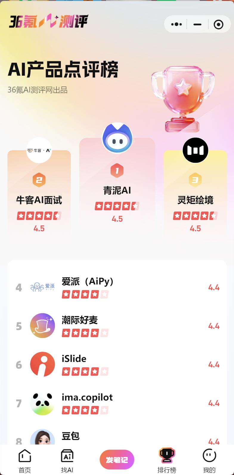小程序版:微信搜索“36氪AI测评”,即可随时随地刷测评、发笔记、找圈子