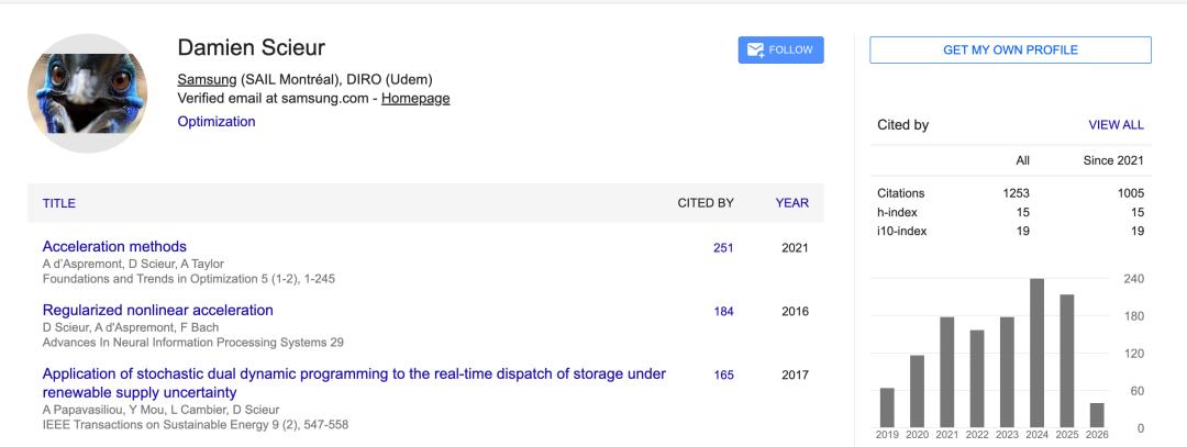 Damien Scieur,现任三星研究员,曾任普林斯顿大学博士后,主要方向是优化算法。