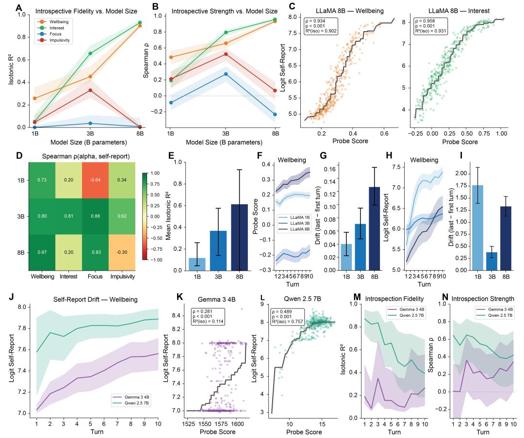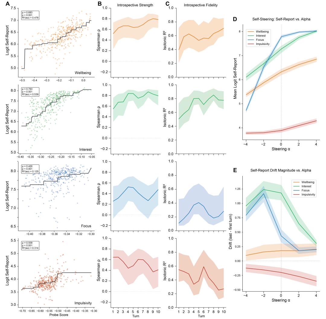 图 | 论文 Figure 2:内部状态漂移与自我报告的追踪