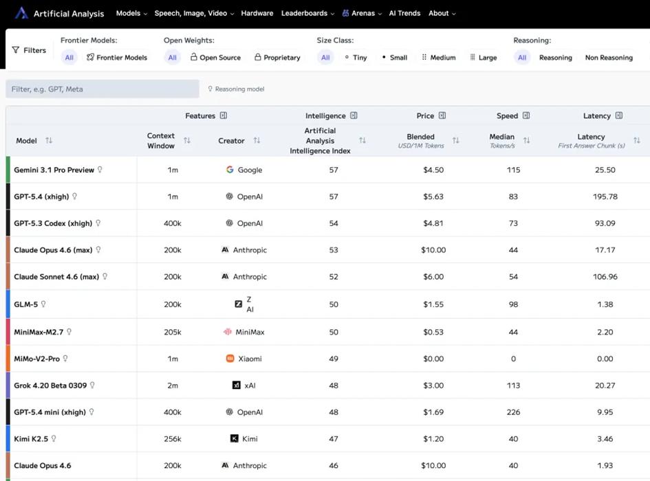 Artificial Analysis跟踪的大模型API价格