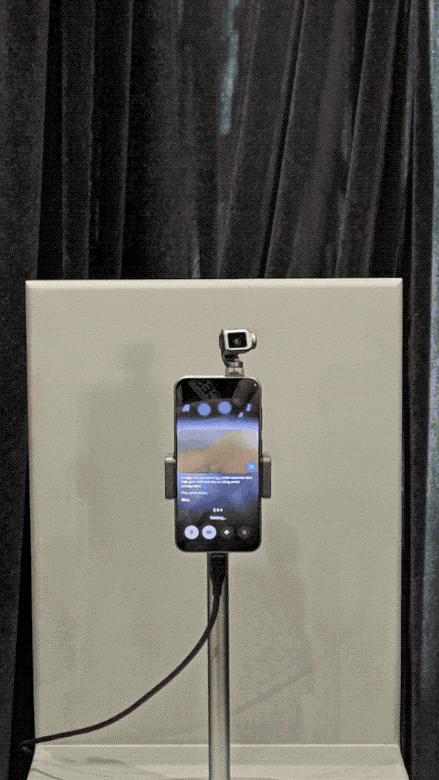 因此这颗摄像头还有一种独特的AI交互方式,它不仅让手机真正拥有了视觉,还能随着外部音乐的变化进入节奏律动模式。在该模式中,摄像头云台部分会随着节奏跳起舞,虽然乍一看你会觉得这有些好笑,但在这一环节中,大家能明确感受到Robot Phone云台极高的灵敏度。
