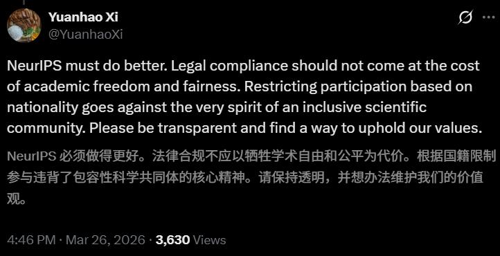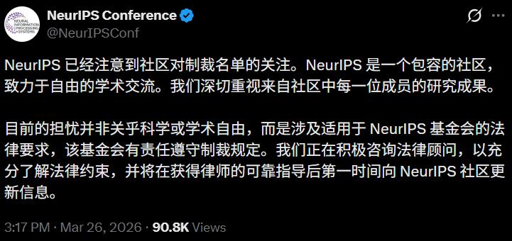 3月26日下午,沉默了整整三天的NeurIPS官方,终于在X上发了一条声明。