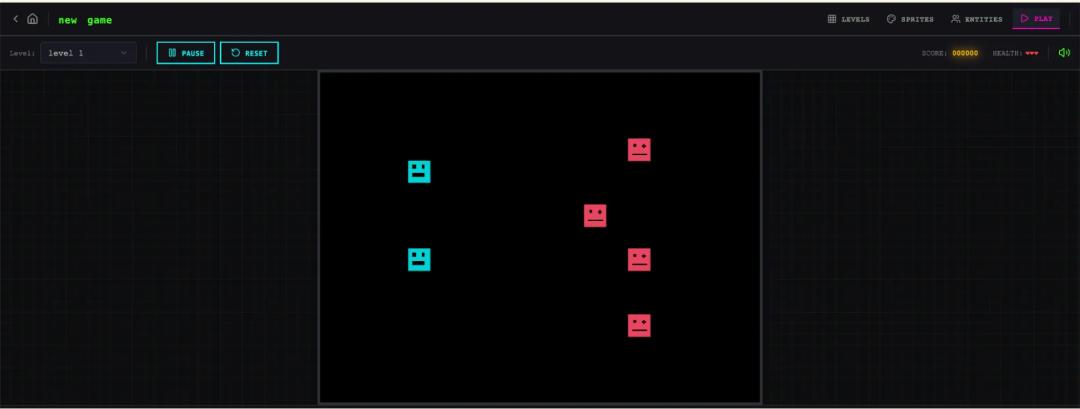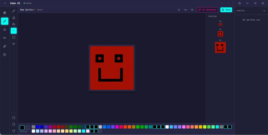 精灵动画、音效系统、行为模板、AI精灵生成、关卡设计助手、导出分享,全部被拆进流程里。