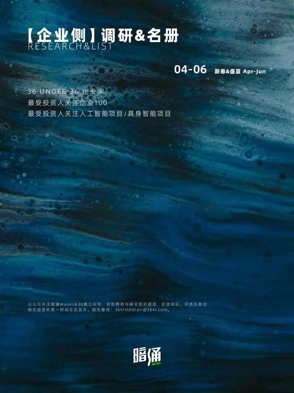 【企业伙伴】可持续关注暗涌Waves&36氪公众号,获取榜单与峰会报名通道,后续报名、评选及参会相关信息将第一时间在此发布。