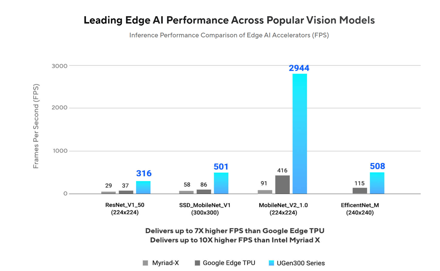 UGen300 配备 8GB LPDDR4 专用内存,通过 USB-C 接口连接其他设备,典型工作负载下功耗仅 2.5 瓦。