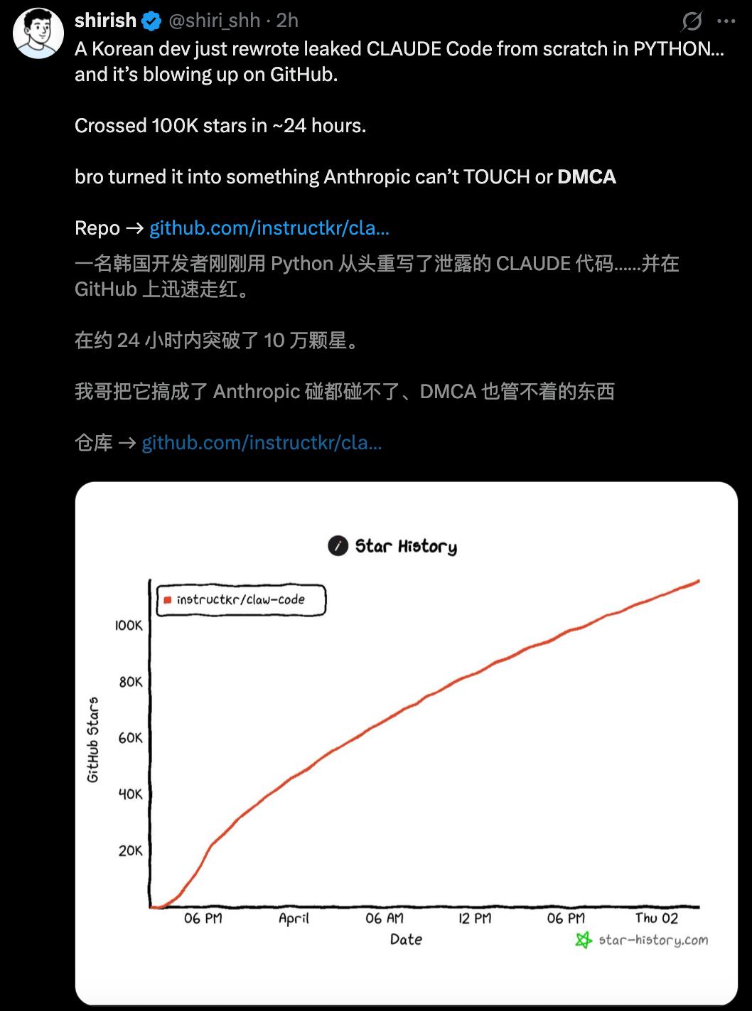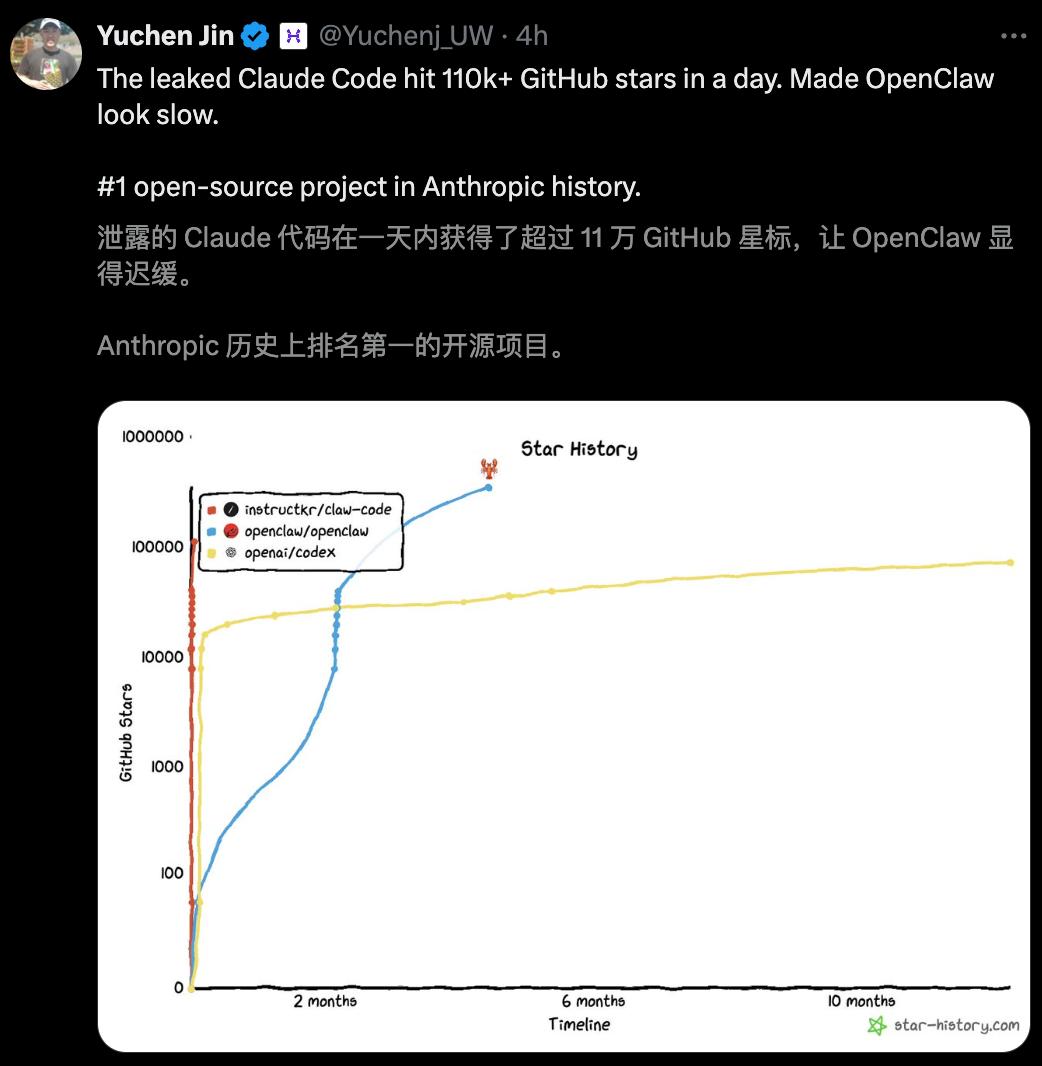 短短两个小时,星标、Fork数刷爆纪录,涨势猛超OpenClaw。
