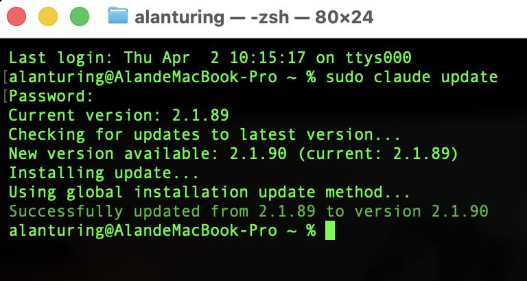 你需要做的是,立刻将Claude Code升级到最新版本(只需在终端命令行中输入「sudo claude update」并输入密码(密码看不见是正常的)即可;截至发稿时最新版本是2.1.90),并彻底检查并清剿本地环境里那些暗藏鬼胎的网络请求指令(可以借助Agent),才是眼下最重要的正经事。
