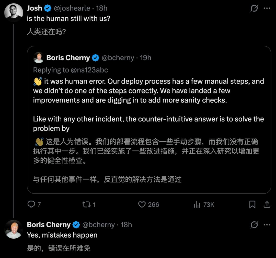 Claude Code之父Boris Cherny紧急救火,他表示,「这不是有意为之,正GitHub一起修复问题」。