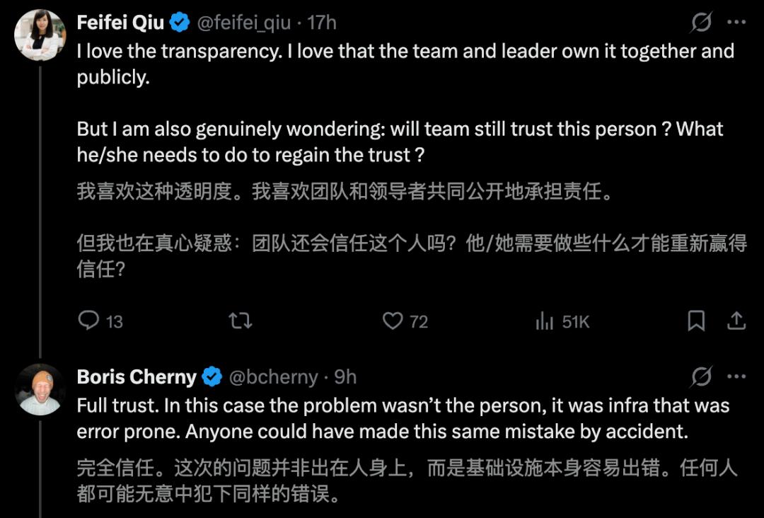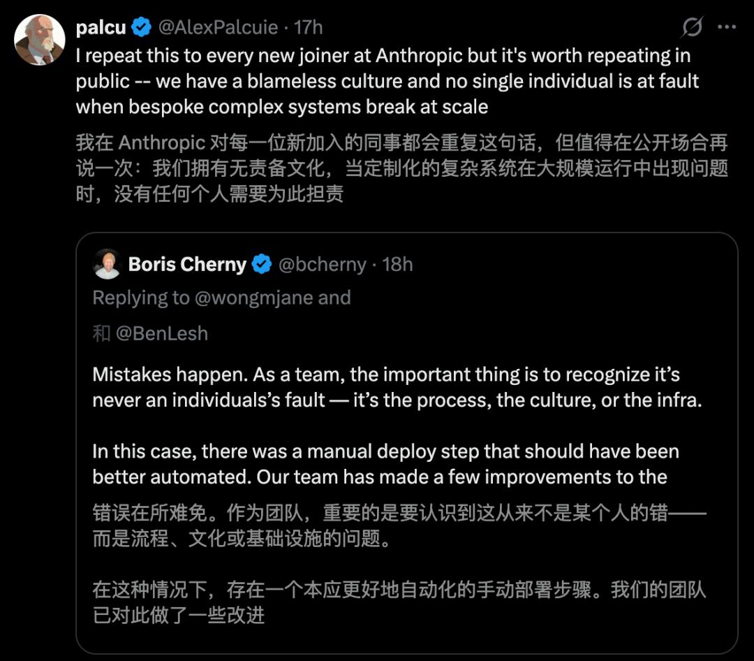 Anthropic团队这种一起担责的态度,引来全网一大批网友的好评。