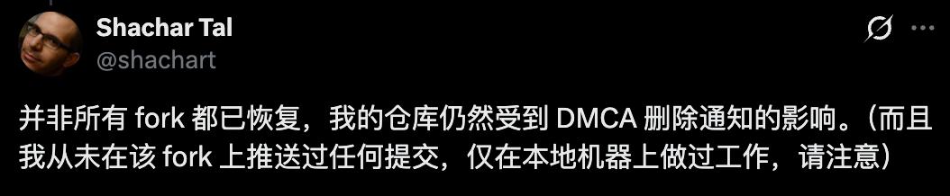 不过,有的开发者称,自己Fork的项目还没有回来。