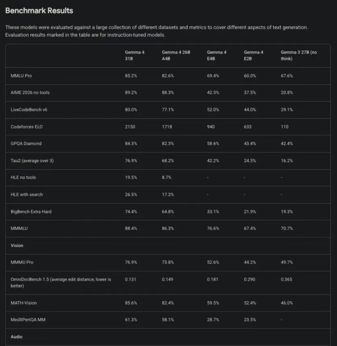 4月2日凌晨,谷歌DeepMind CEO Demis Hassabis在社交平台X上发了四颗钻石的emoji,几个小时后,谜底揭晓,谷歌正式发布了旗下最新开源大模型家族Gemma 4,这是谷歌入局开源AI赛道两年多来,拿出的最有诚意、也最具杀伤力的作品。