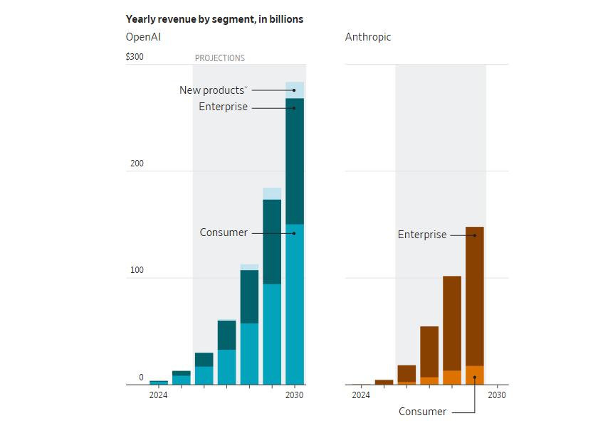 从《华尔街日报》获取的财务数据来看,Anthropic的收入增长势头比OpenAI更猛。