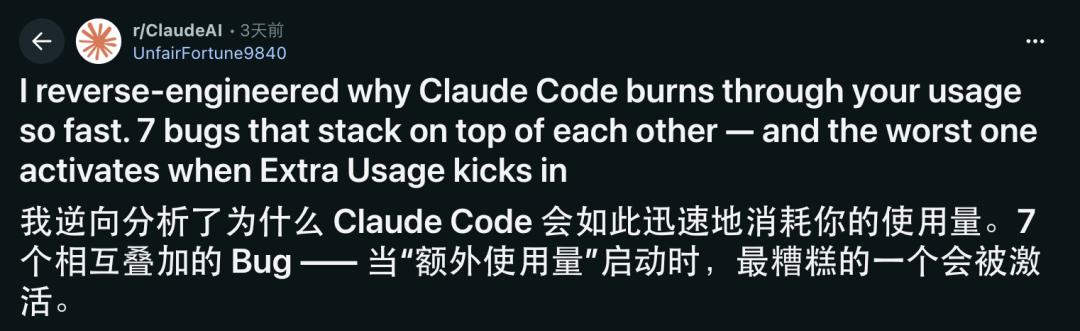 最后,作者声明他无法判断 Extra Usage 时降级缓存是故意的设计还是一个疏忽,有可能是某种成本优化但没有考虑到连锁反应。