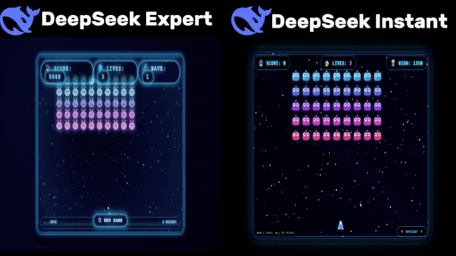 但网友 @AiBattle_ 让其制作的太空侵略者游戏结果却让人有点意外:专家模式的输出和快速模式差距并不明显。
