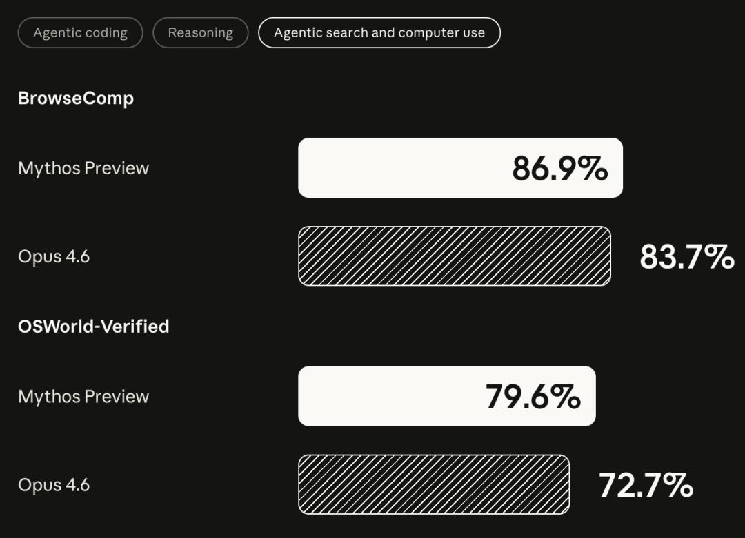BrowseComp:Mythos 86.9%,Opus 4.6 83.7%
