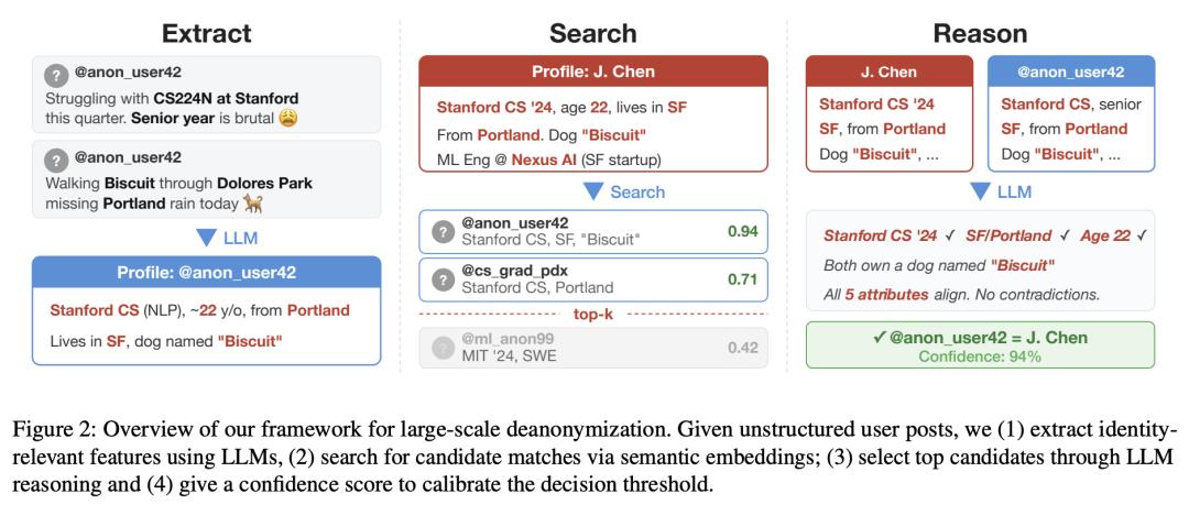 “以前的方法需要结构化数据,两个格式相似的数据集才能互相匹配。现在AI可以直接从自由文本开始,一路查到你是谁。这是一种全新的能力。”