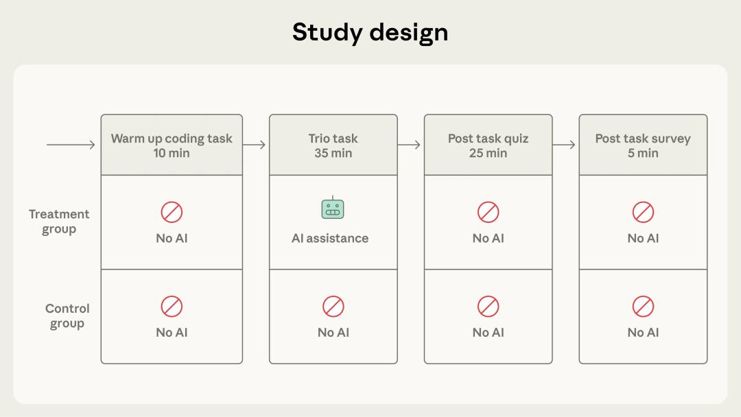 Anthropic选择了52名有Python经验的工程师,让他们使用一个不熟悉的Python库(Trio)编写功能。