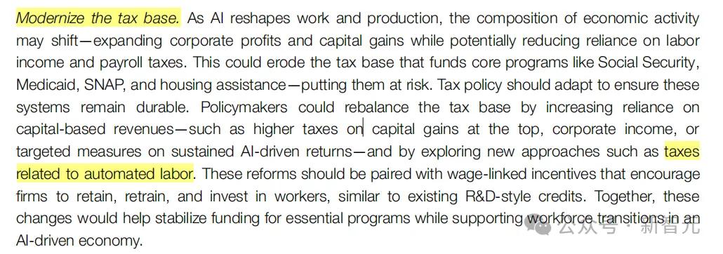 OpenAI看到了这个问题,在文件中提出,探索对「自动化劳动」征税,也就是外界说的「机器人税」。