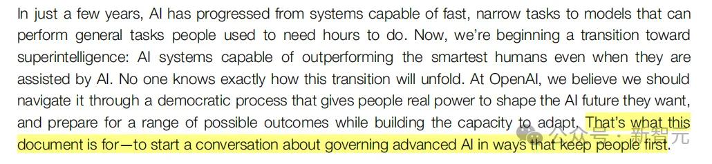 为了应对这场变革,OpenAI昨天抛出一份13页重磅政策文件:《智能时代的产业政策:以人为先的构想》(Ideas to Keep People First)。