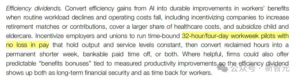 OpenAI在文件中明确建议,激励企业和工会试点4天工作制,且「no loss in pay」(薪水不减)。