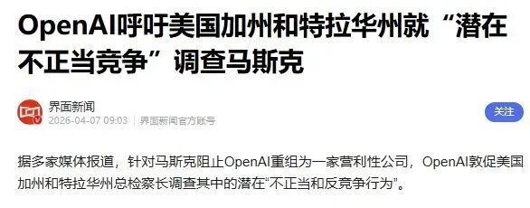 OpenAI守住监管认可的重组安排,就是为了稳住资本,继续砸钱搞研发。马斯克揪住最初的非营利承诺,就是想打乱OpenAI的节奏,为自己的xAI争取时间和空间。