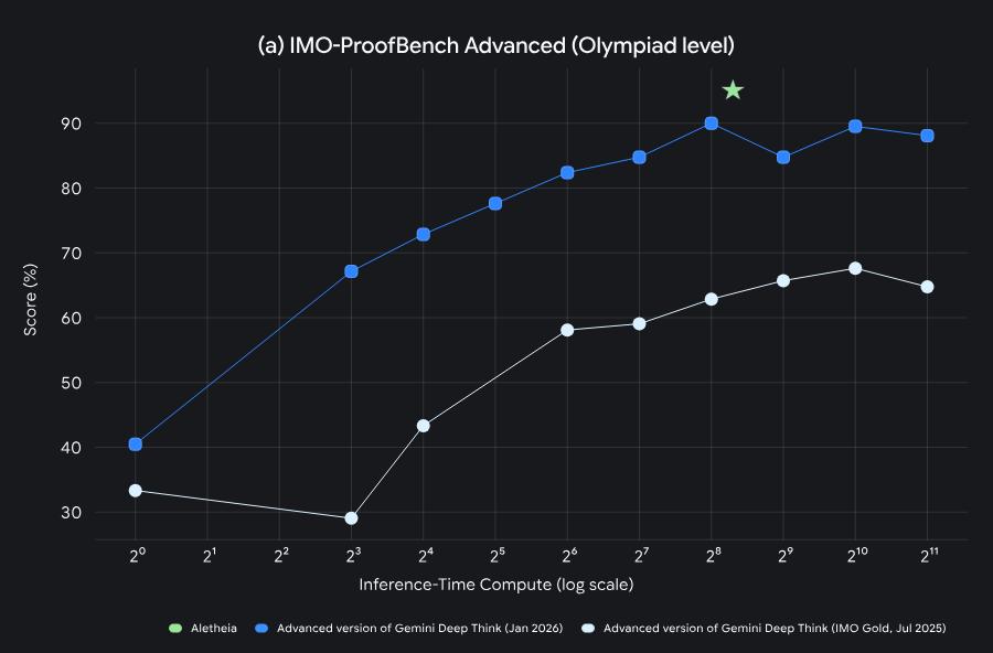 DeepMind公布了一个叫Aletheia的数学研究智能体,基于Deep Think驱动,能自主生成、验证、修订研究级数学问题的解法。