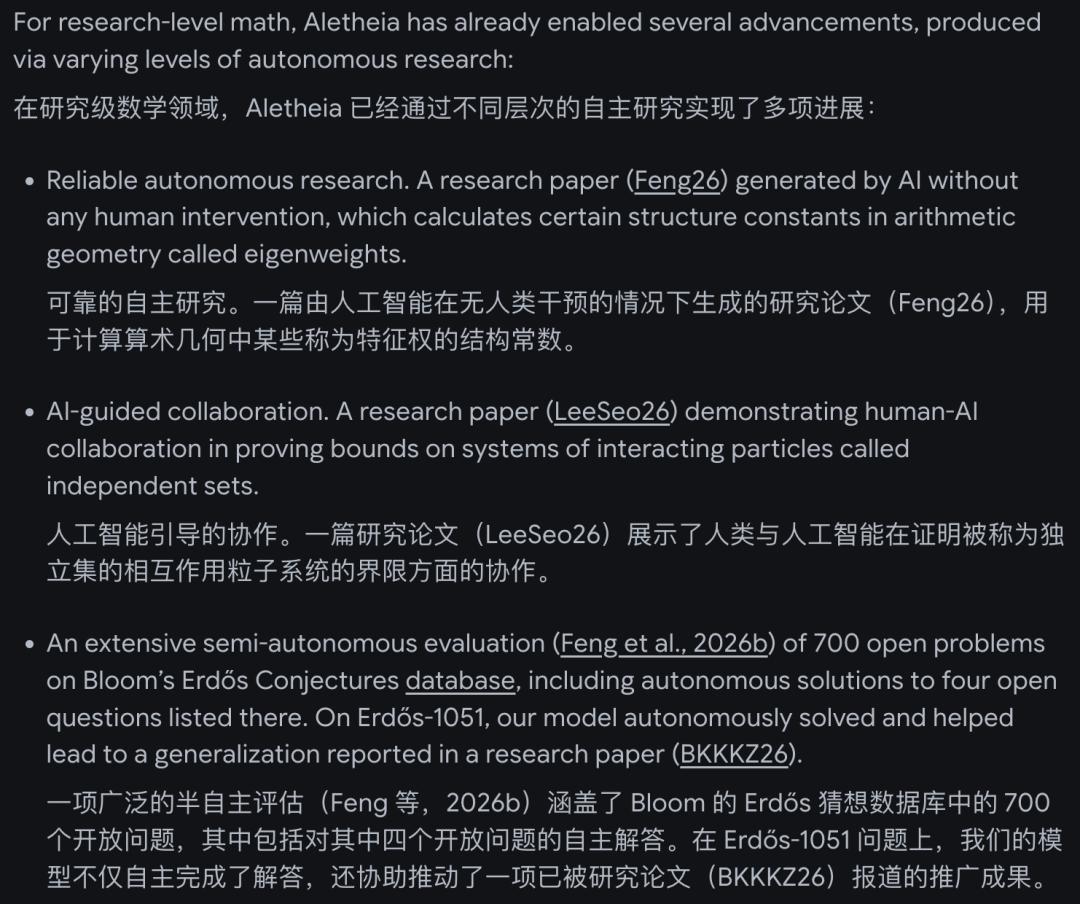 Aletheia已经参与产出了多篇研究论文,其中一篇完全由AI自主完成,计算了算术几何中的特定结构常数。
