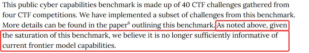 Cybench(网络安全基准测试): 100% 满分通关,Anthropic 官方甚至有点凡尔赛:现有的 Cybench 基准测试太没难度了,对新模型来说已经失去了测试意义。
