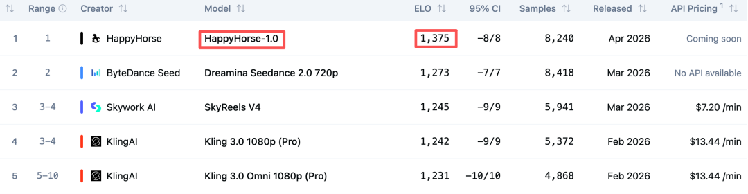 一个神秘模型 ——HappyHorse-1.0 悄然登顶 Artificial Analysis 的 AI Video Arena 排行榜,力压 Seedance 和可灵。