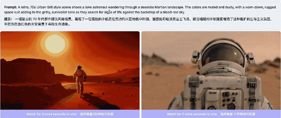 Artificial Analysis 的 Video Arena 的排名机制,是数千名真实用户在完全不知情的情况下,对两段生成结果进行盲测对比得出的 Elo 体系。