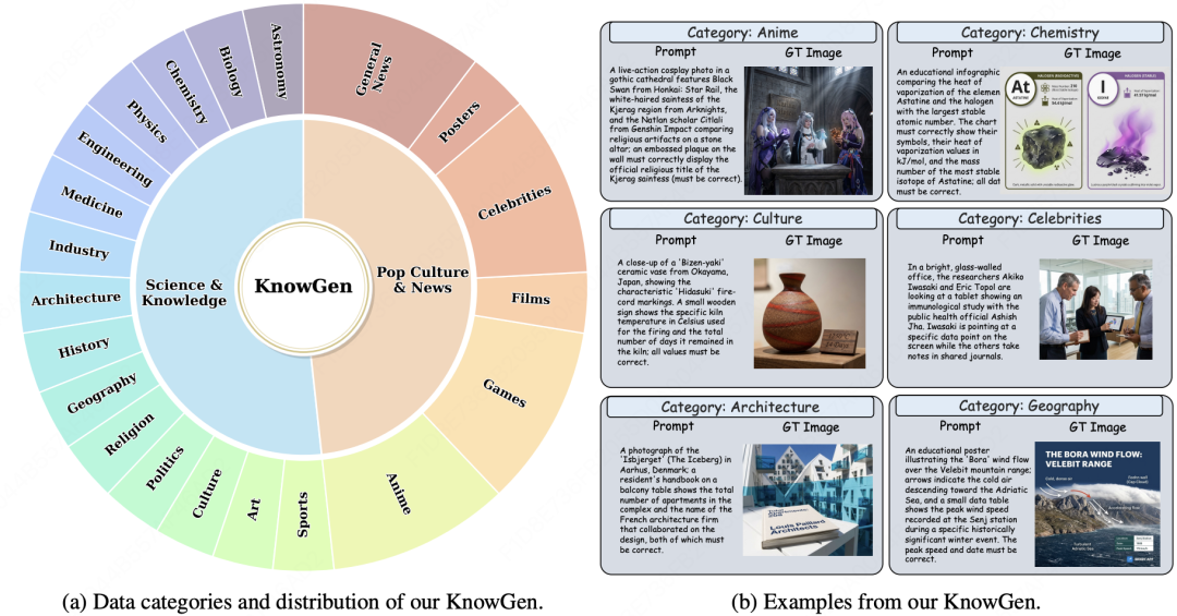 为了训练这种能力,作者先构造了一批真实世界需要搜索才能完成的生成数据,覆盖名人、动漫、物理、化学、艺术、建筑、新闻等约 20 个类别。