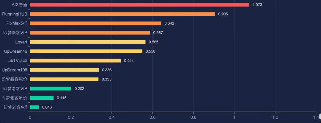 据博主卡布奇诺ultra的对比,最便宜的还是即梦,0.335元/秒的制作成本仍是性价比T0之一。