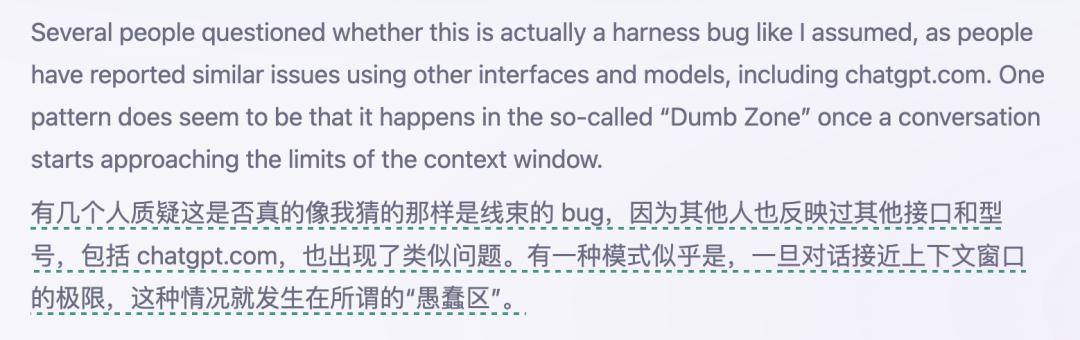 其实不仅是Claude,有人说ChatGPT也有类似的问题。目前初步猜测bug的触发条件之一,是聊天对话接近了上下文窗口极限。