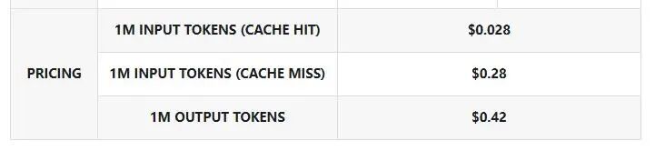 DeepSeek-V3.2费用 来源:DeepSeek API官方定价文档