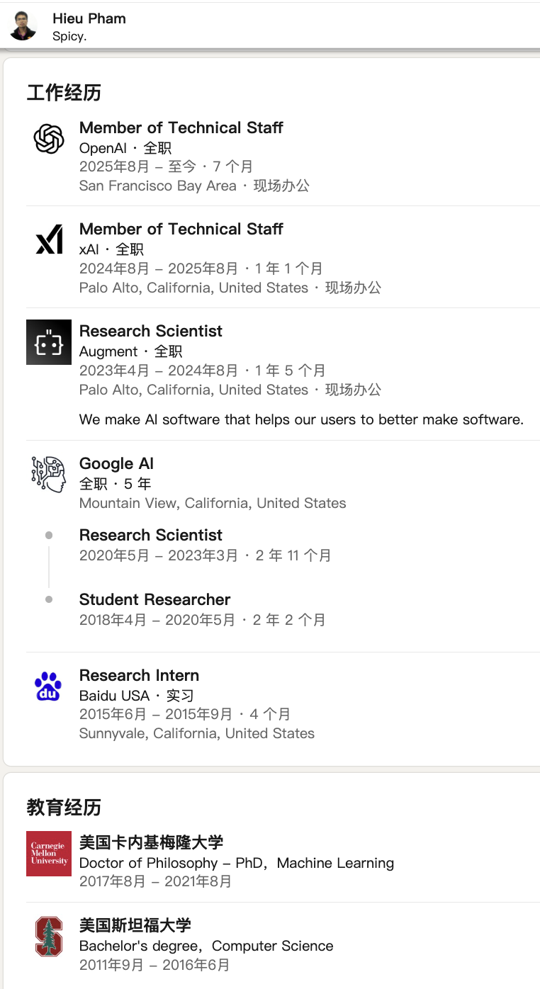他在吴恩达主管时期的百度硅谷实验室,与 Anthropic CEO Dario Amodei 当过同事,后面从谷歌到 xAI,再到如今刚刚离开的 OpenAI。